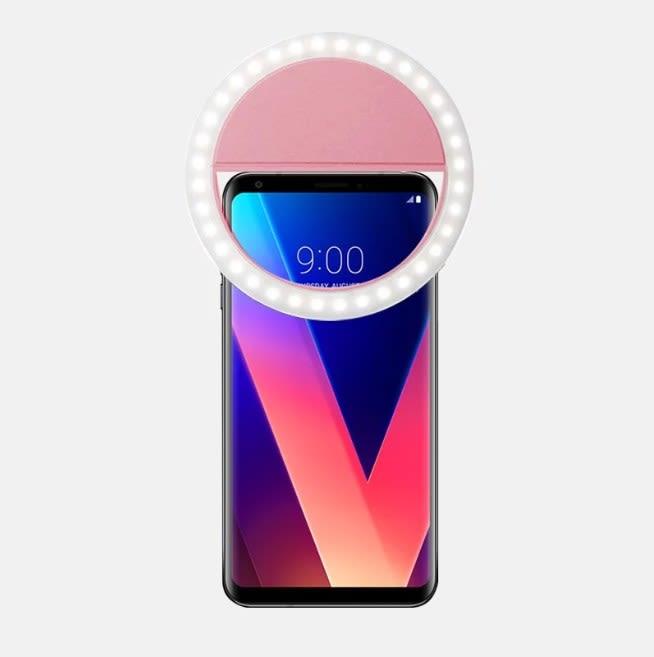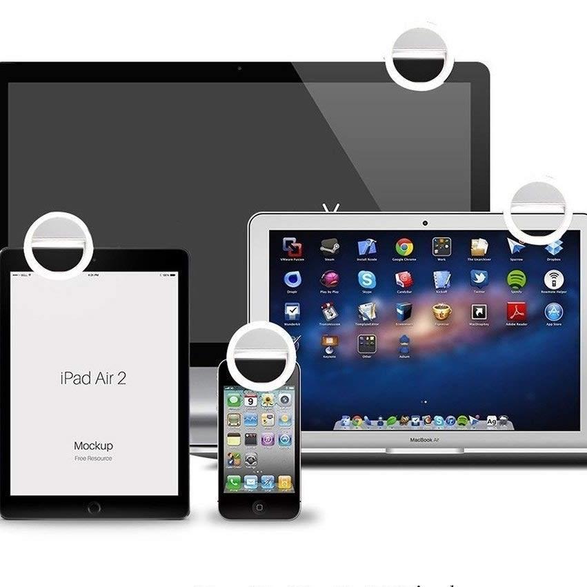 Take enhanced and perfectly lit selfies with this selfie ring light! No more annoying shadows and dim photos! Attach to a phone, tablet or laptop. Four color choices offered. Choose your brightness level with three adjustable levels. Just pop in two AAA batteries (not included) and start taking the perfect selfie, better blog photos and never worry about poor lighting again!